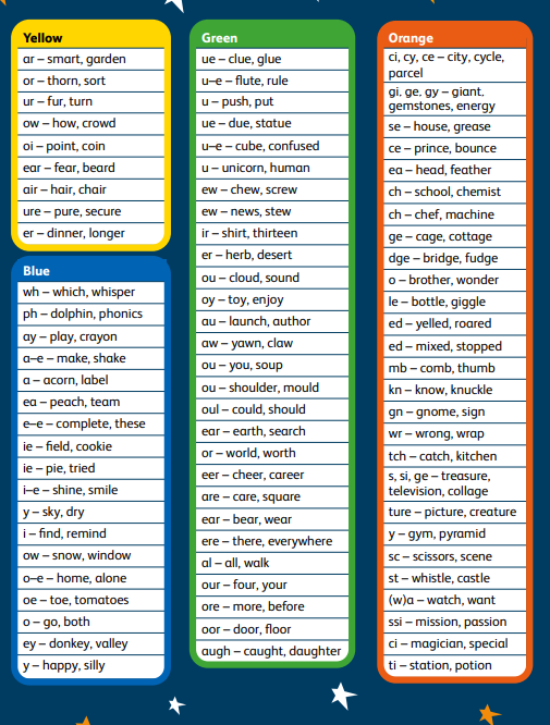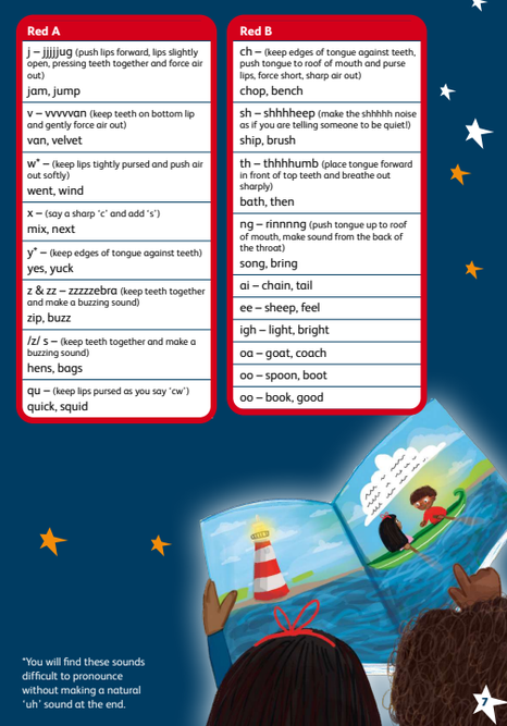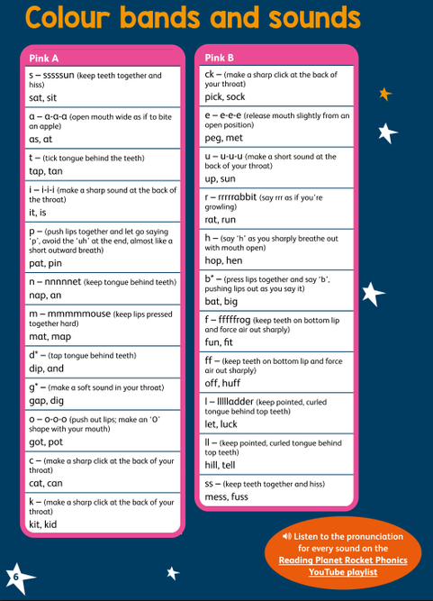 The sounds are grouped into colour bands, relating to the colour books that your child will be able to read as they explore new letter-sounds.