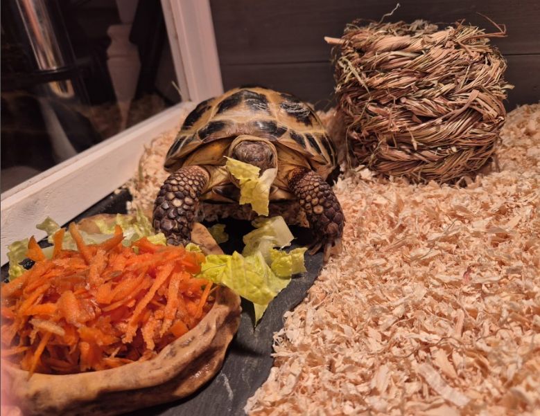 Sydney’s favourite food is lettuce; he can eat up to 4 lettuce leaves a day. He also likes kale, cucumber, aloe vera and carrots. However, Sydney can be very fussy, so we are still trying to find other foods that he will eat.