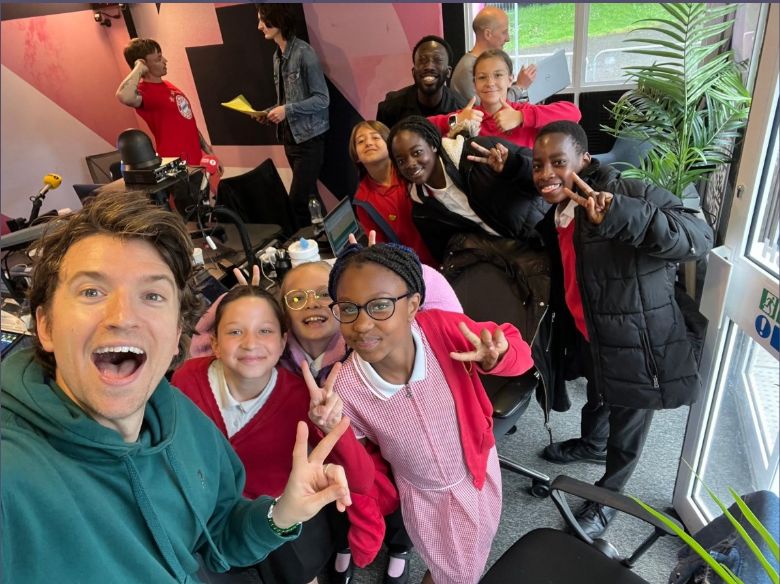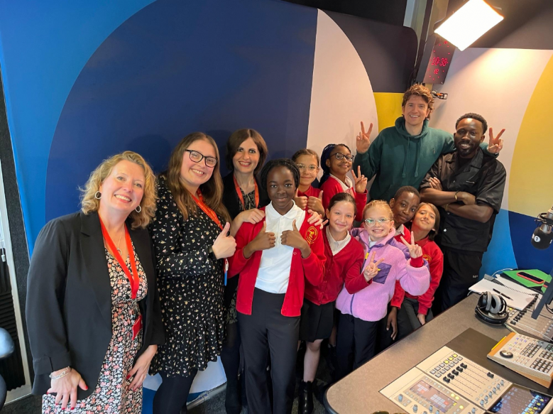 After Mrs Jackson spoke to Greg James on the phone, he invited a group of children from Years 5 and 6 to come and join him for the end of his radio show today.